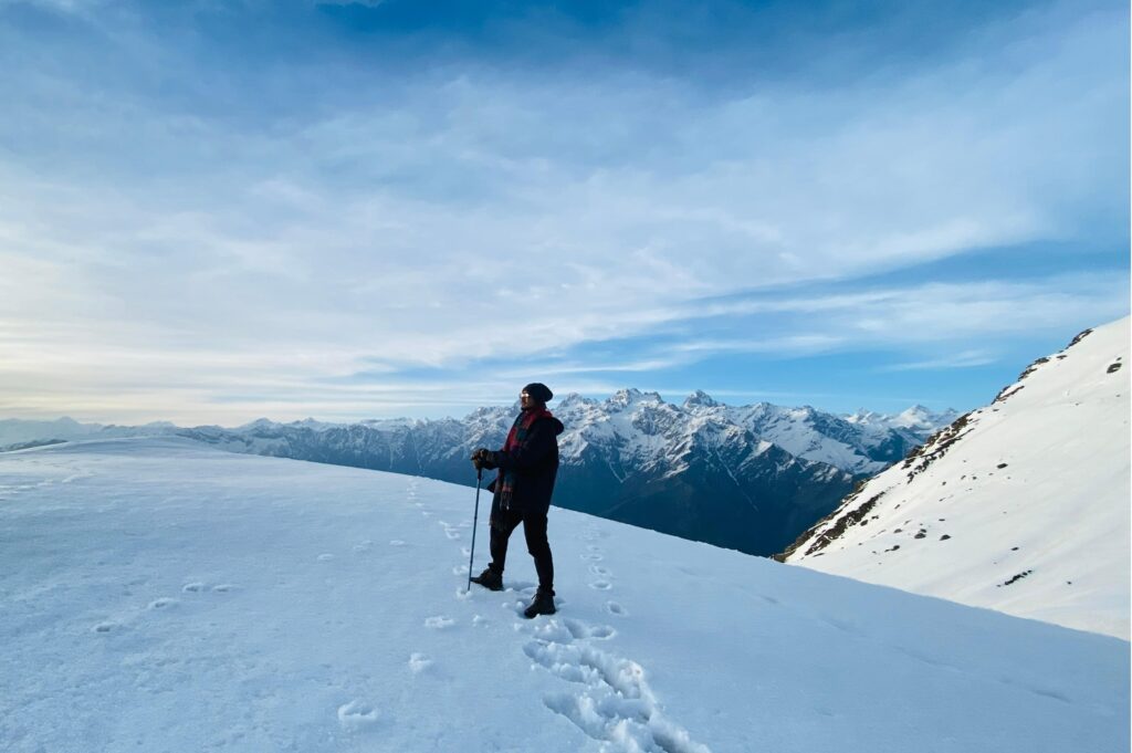 A 5D/4N moderate trek starting from Kasol, known for snow trails, meadows, and scenic Himalayan passes (~13,800 ft).